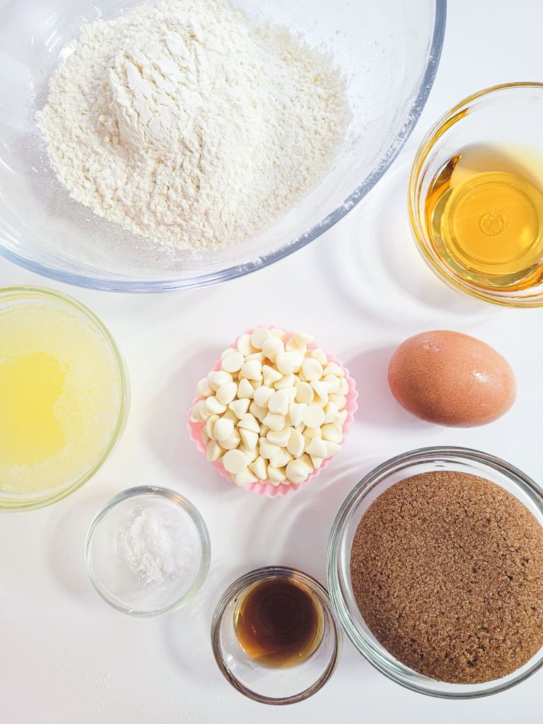 - 1/2 cup of white chocolate chips, or whatever mix-ins you like, such as chocolate chips, toffee, nuts, etc. (85g)