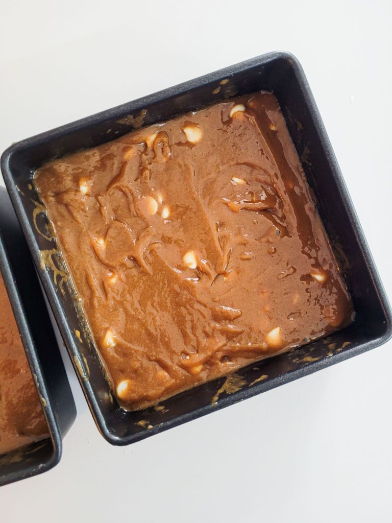 - You can now either put it into one 8×8 pan, or split the batter into two 5×5 pans. (I like using the 5×5 because I have more edge pieces!)