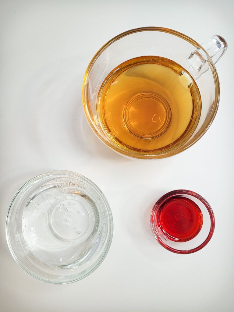 - Brew a strong cup or pitcher of black tea and let it cool. (I usually make a big pitcher with 2-3 tea bags and put it in the fridge overnight, leaving the tea bags in.)