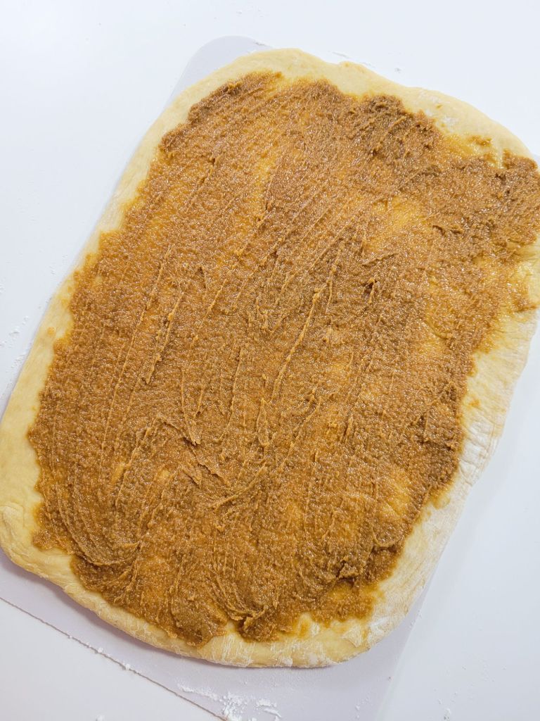 - Spread the filling evenly across the dough, leaving a ½-inch border around the edges. (It won’t feel like enough at first, but trust the process!)